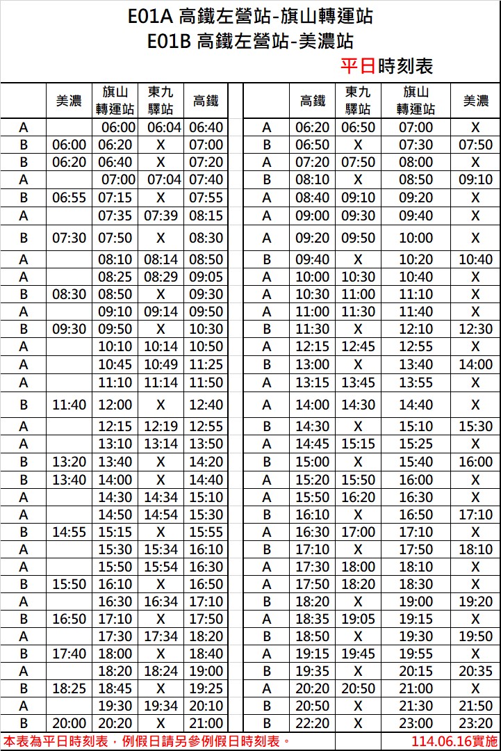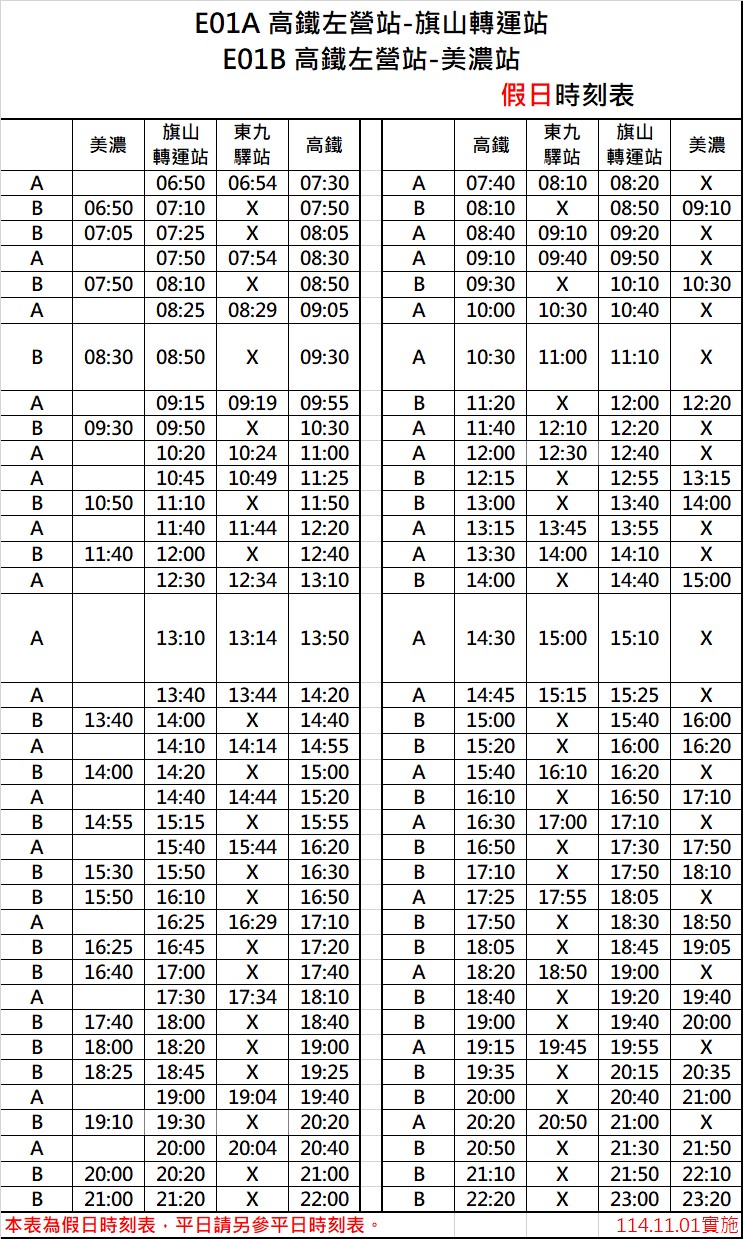 「E01A區(qū)間車(實(shí)踐)」行駛寒假(減)班次。