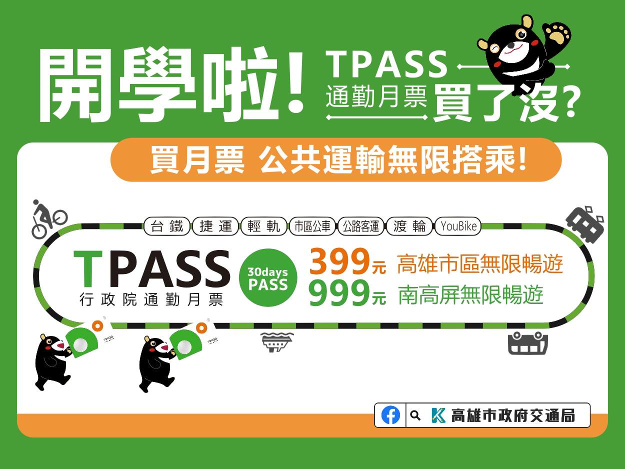 高雄市399月票:包含高雄境內(nèi)捷運(yùn)、輕軌公車公共自行車(前30分免費)渡輪(鼓山-旗津、前鎮(zhèn)-中洲),即日起加碼納入臺鐵高雄(大湖-九曲堂)區(qū)間服務(wù)