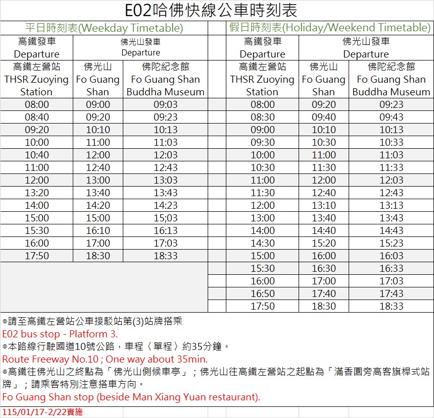 E02哈佛快線,115.01.17-2.22時(shí)刻表實(shí)施