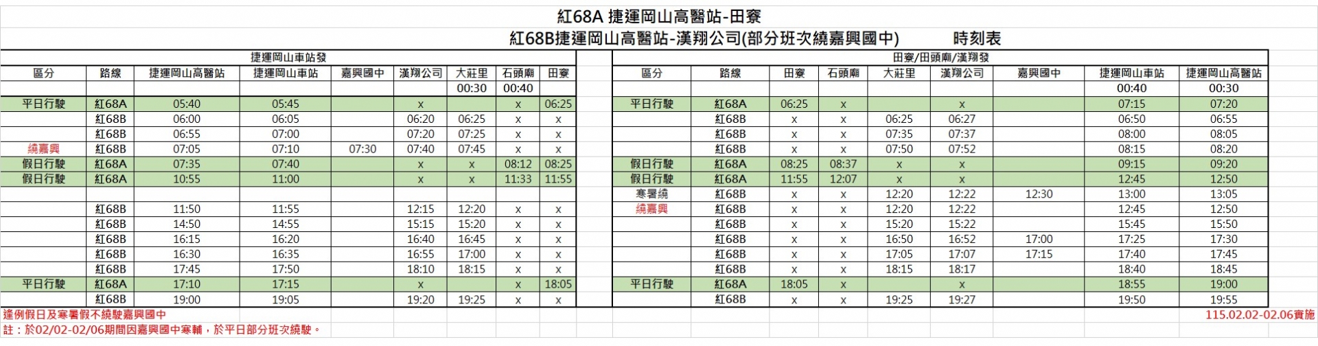 紅68,115.02.02-02.06時(shí)刻表實(shí)施